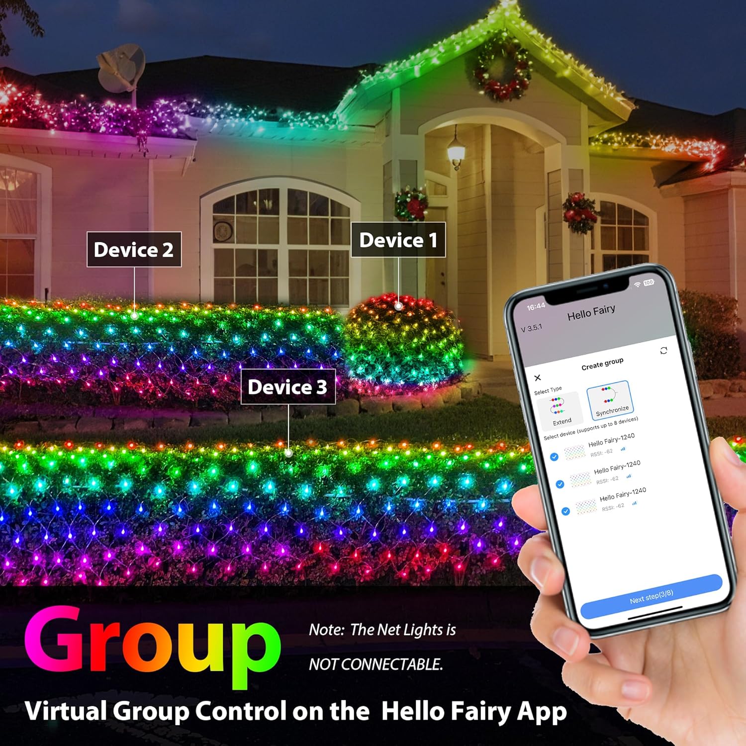 - All-Weather IP44 Waterproof Protection: Engineered for outdoor durability, these Christmas net lights outdoor feature PVC-coated mesh and IP44 rating. Withstand rain, snow, and seasonal changes while maintaining vibrant RGB, warm white, and blue lighting effects